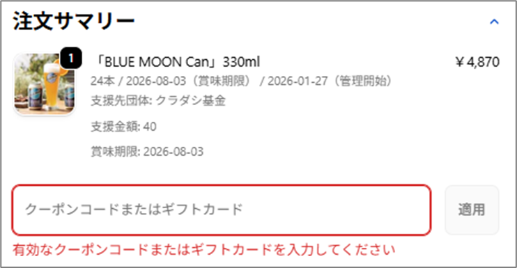 商品ページで取得したクーポンは最後に取得したクーポンが決済画面で反映されます。