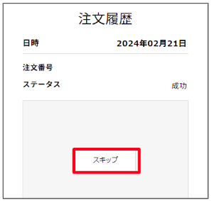 「スキップを受け付けました」と表示されたら、スキップ完了です。