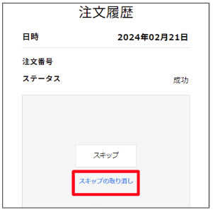 スキップを取り消したい定期便の「詳細を確認する」を押下後、「スキップの取り消し」を押下します。