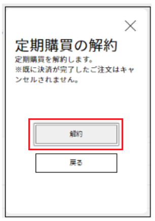 「定期購買の解約」というポップアップが出るので「解約」を押下ください。